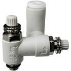 La serie ASD riunisce in un unico corpo un regolatore di flusso doppio con regolazione in alimentazione e regolazione in scarico. La serie è disponibile con attacchi PT o NPT e con raccordi istantanei di serie. Le versioni anti manomissione e con regolazione tramite cacciavite a testa piatta sono disponibili anche con sistema di protezione supplementare contro l’azionamento accidentale.