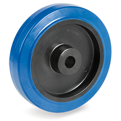 Mozzo con cuscinetto a sfere montati ad interferenza nelle sedi ottenute di stampaggio sul nucleo. La ruota è disponibile anche priva di cuscinetti.